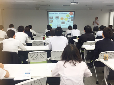これから放射線科の中心となる人物の育成を目的とし、2年目にあたる診療放射線技師36名を対象に開催されました。東戸塚記念病院、有川誠也課長による「情報管理」から始まり、明理会中央総合病院、荒木信吾係長による「これだけは知っておかなければならないCTの基礎知識」、板橋中央総合病院、齋藤陽子主任とイムス太田中央総合病院、須田徹主任による「これだけは知っておかなければならないMRIの基礎知識」の講習が行われました。講師の話はとてもわかりやすく、密度の濃い内容でした。本研修の最後に、放射線部統括技師長より「今はできなくとも、大事なことは続けていくことで力はついていく」とお言葉をいただいたように、本研修内容も各施設で復習し継続していくことで身についていくと感じました。