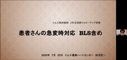 5月に行われたイムス放射線部2年目技師フォローアップ研修会①に続き開催された今回の研修会は、新型コロナウイルス感染者の増加に伴い集合研修からWeb研修へ変更となりました。開催直前の変更にも関わらず参加予定者全員が参加することが出来たのは、2年目技師の学習意欲の高さと周囲の協力が合わさった結果だと考えられます。