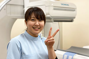 横浜旭中央総合病院は3分の1が女性技師です。仕事以外でも気軽に相談にのってくれる先輩方のおかげで居心地の良さを感じています。