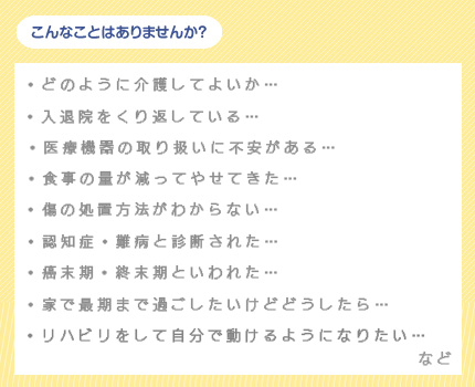 - 切れ目のない継続支援(継続看護・継続リハビリ)をします。