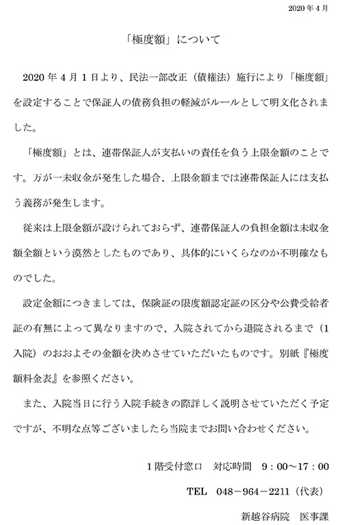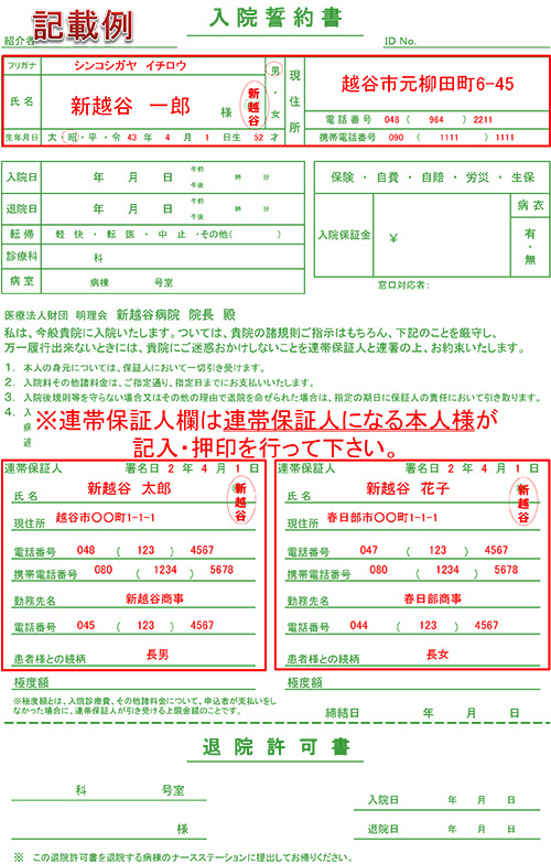 ※連帯保証人の2名の内、どちらか1名は極力患者様ご本人とは別の住所に