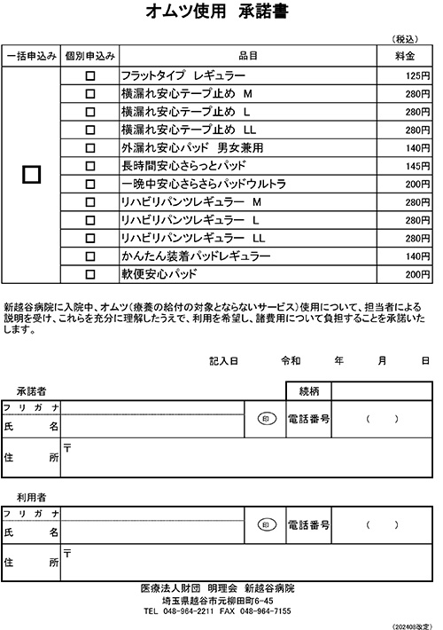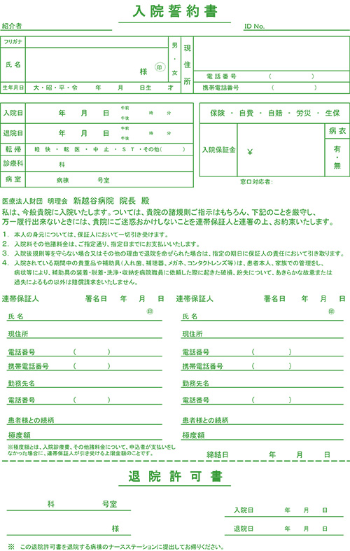 ご入院の際は ダウンロードしていただき、内容をご記入の上ご持参ください