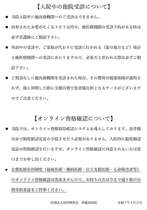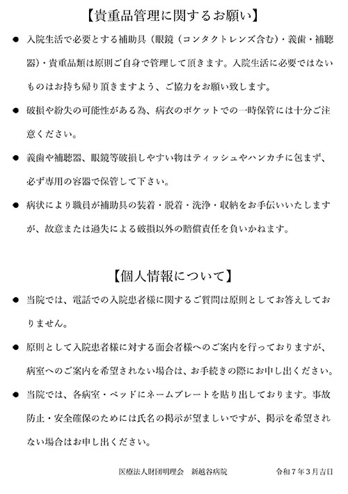※【貴重品管理に関するお願い】【個人情報について】【入院中の他院受診について】