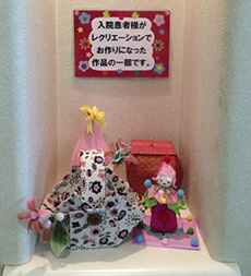 手でものを作るのが難しい方は、俳句づくりやカラオケ、麻雀に参加したり、あるいは本を読んだり、その場にいる人たちとおしゃべりをするだけでも表情が明るくなります。励みになるよう、作品は院内に飾るほか、お稽古の成果を発表するイベントなども開催しています。また、地域住民に手芸などで使う材料を寄付していただき、イベントにもご参加いただくなど、地域ぐるみで患者さまを支えています。