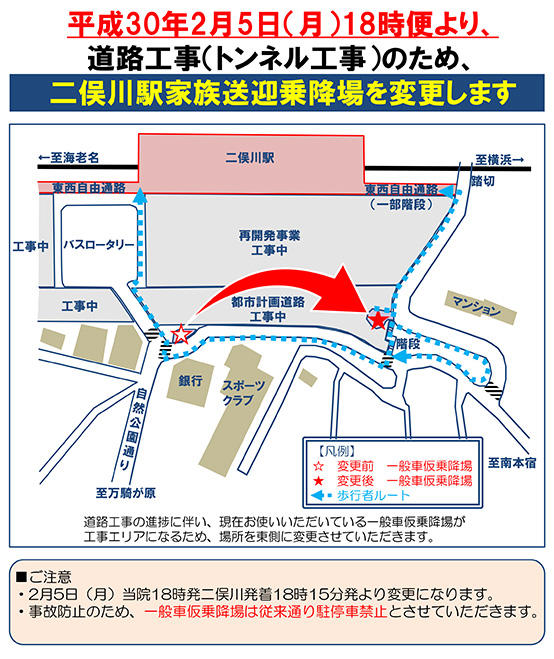 以前より近隣住民の方から病院前及び駐車場敷地内、路上への入庫待ちによる駐停車に関する苦情を受けております。 駐車場入庫待ちの駐停車により交通の妨げになっていると同時に、側道から車が出る際に見通しが悪く危険であるという指摘をいただきました。また、戸塚警察からも駐車場待ちの路上駐停車は止めるよう指導を受けております。 第1・第2駐車場が満車であった場合は、路上・駐車場敷地内で入庫待ちをせずに速やかに移動をお願いいたします。 このままの状態が続きますと駐車場を現状のままご利用いただくことが困難となります。