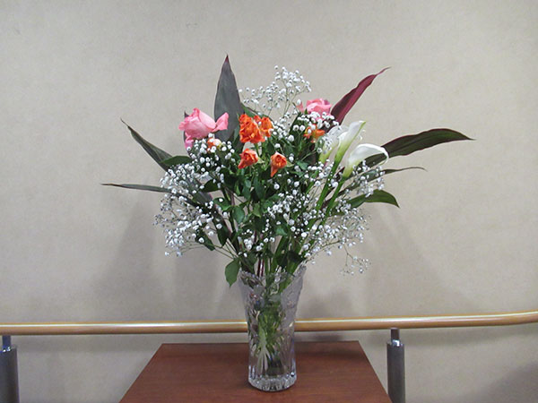 今週はカスミソウをたくさん使い、白のカラー、サーモンピンクのバラ、オレンジのスプレーバラと合わせ、可愛らしい花束をお作りしました。 カスミソウはふわっとした小さな花がたくさん咲き、繊細なレースのような姿で、華やかな花を引き立てる名脇役でもあります。 主に、「無垢の愛」「感謝」「幸福」という花言葉から、ウエディングブーケや祝いの花束に最適な花として愛されています。 |