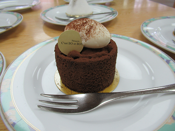 今月は「パティスリーモンシュール」のケーキをいただきました。 人気のお店でいつも行列ができるお店です。 「クリームも生地もとてもおいしいわ」と好評でした。 みなさんの笑顔からケーキのおいしさが伝わってきます。 |