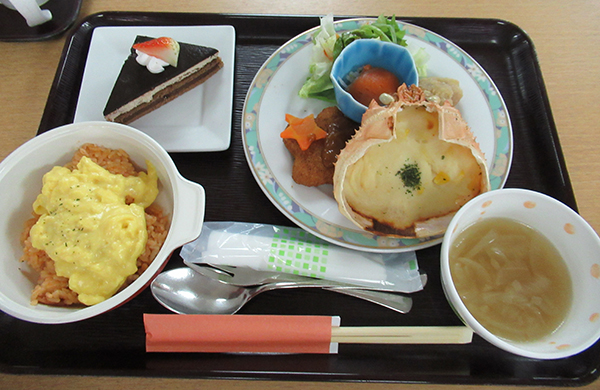 本日は、普段外出されない方々をお誘いして、お食事に出かけました。 久しぶりの外出に皆さん楽しそうです。 お店につくとそれぞれ好きなものを頼まれ、おいしそうな料理がテーブルいっぱいにならべられました。 皆さん、普段より召し上がりとても満足そうです。 「美味しかったわね」「量が多かったけど思ったよりたくさん食べられたわ」など帰りの車の中は楽しいおしゃべりで盛り上がりました。 |