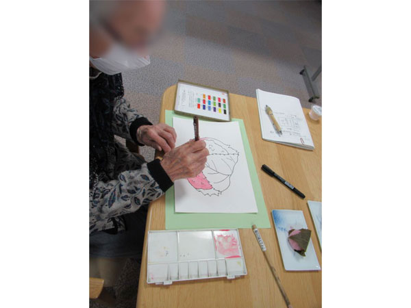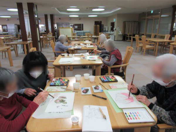 今月はひな祭りに合わせて「ひな人形」を題材にしました。 最初は「うまく描けるかな」と心配されていた方も、筆を持つとすぐに集中され、 「施設にも大きな七段飾りがあるわね」 「娘が小さい頃は毎年飾ったわね」 と、思い出を語りながら楽しんで取り組まれていました。 完成した絵手紙は、どれも味わい深く、優しい色合いの作品ばかりです。 |