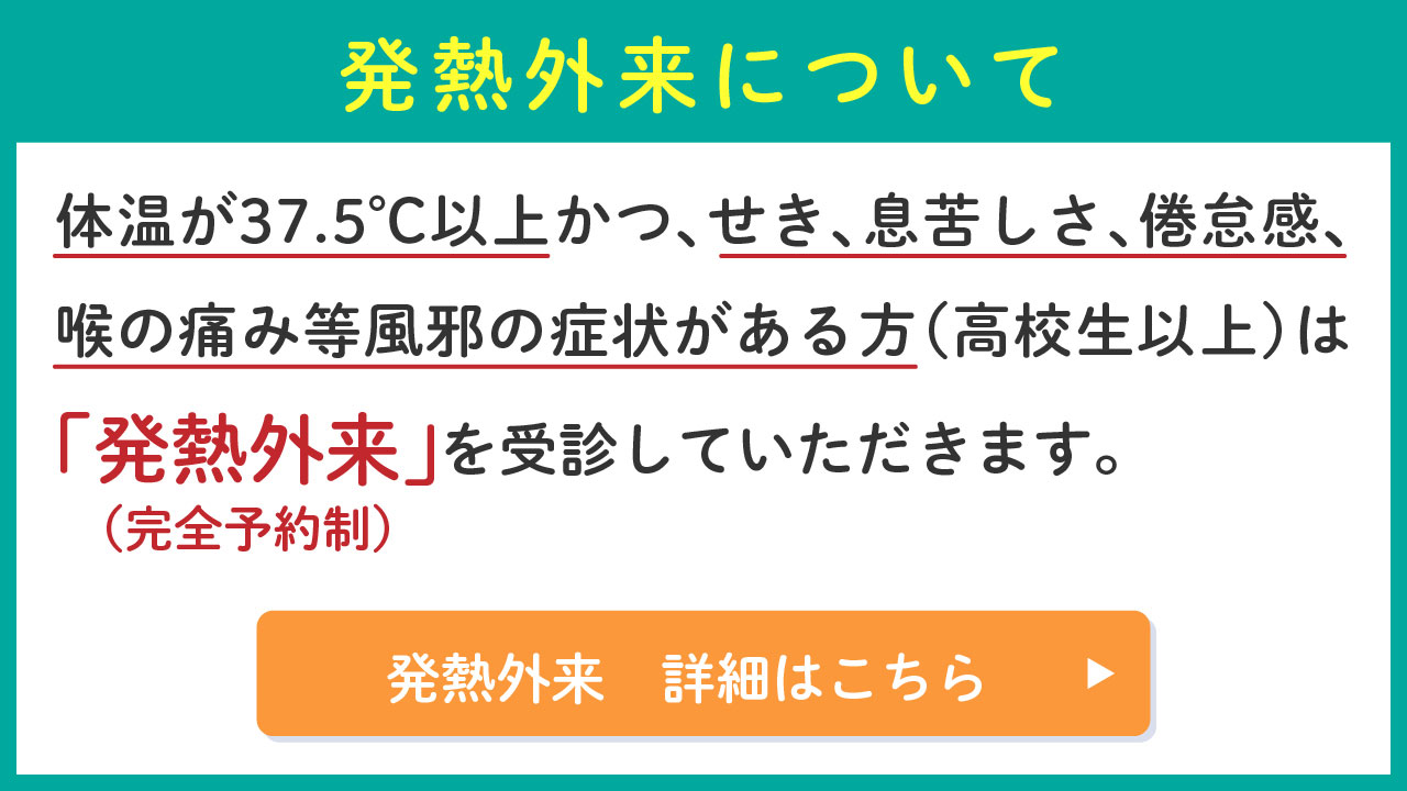 ▶37.5度以上の発熱、咳、息苦しさ、倦怠感、喉の痛み等風邪の症状がある方は別途案内しています。
