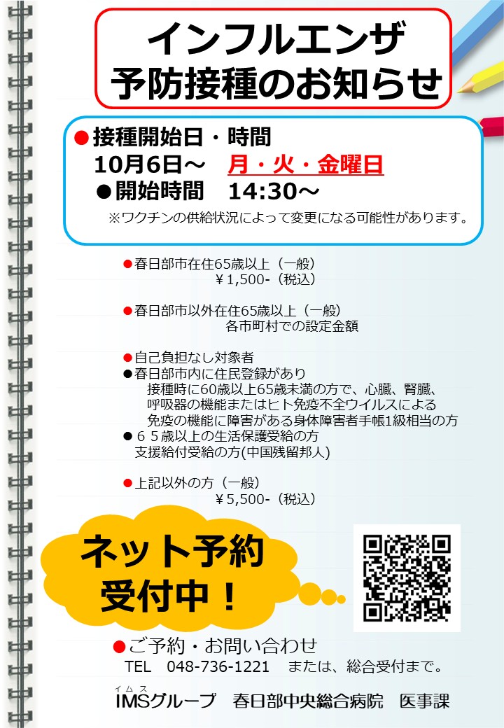- 2024.09.30 お知らせインフルエンザワクチン接種予約開始