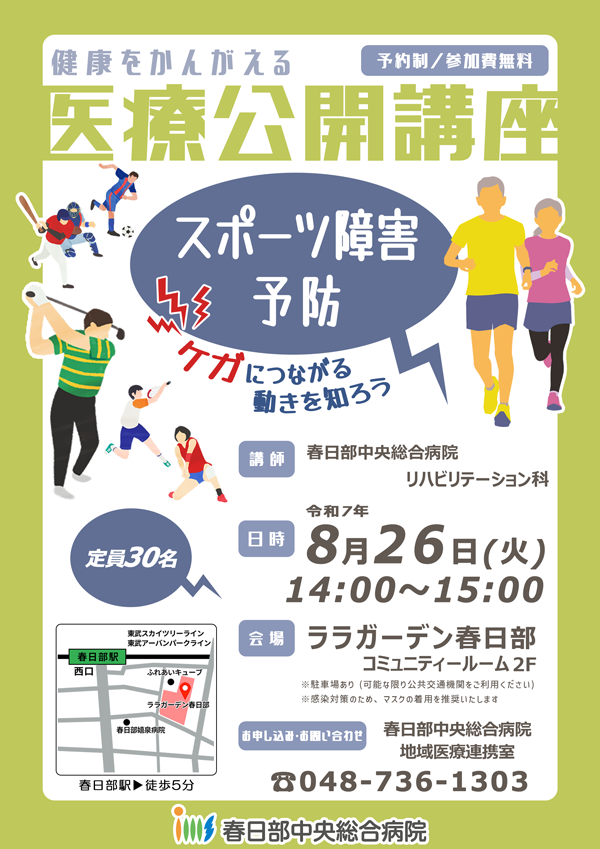 - 2025.07.28 お知らせ公開講座「スポーツ障害予防 ~ ケガにつながる動きを知ろう ~」のご案内