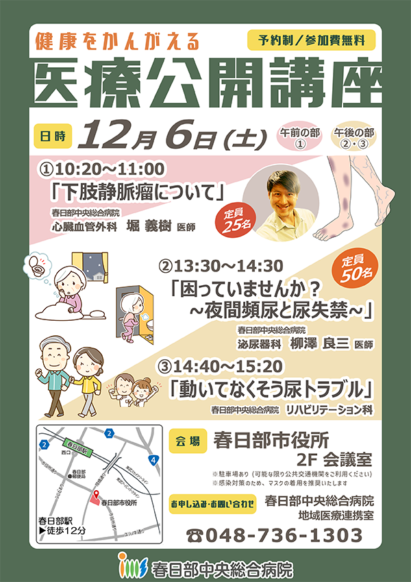 - 2025.11.19 お知らせ公開講座「12/6 医療公開講座(午前・午後) @春日部市役所 」のご案内