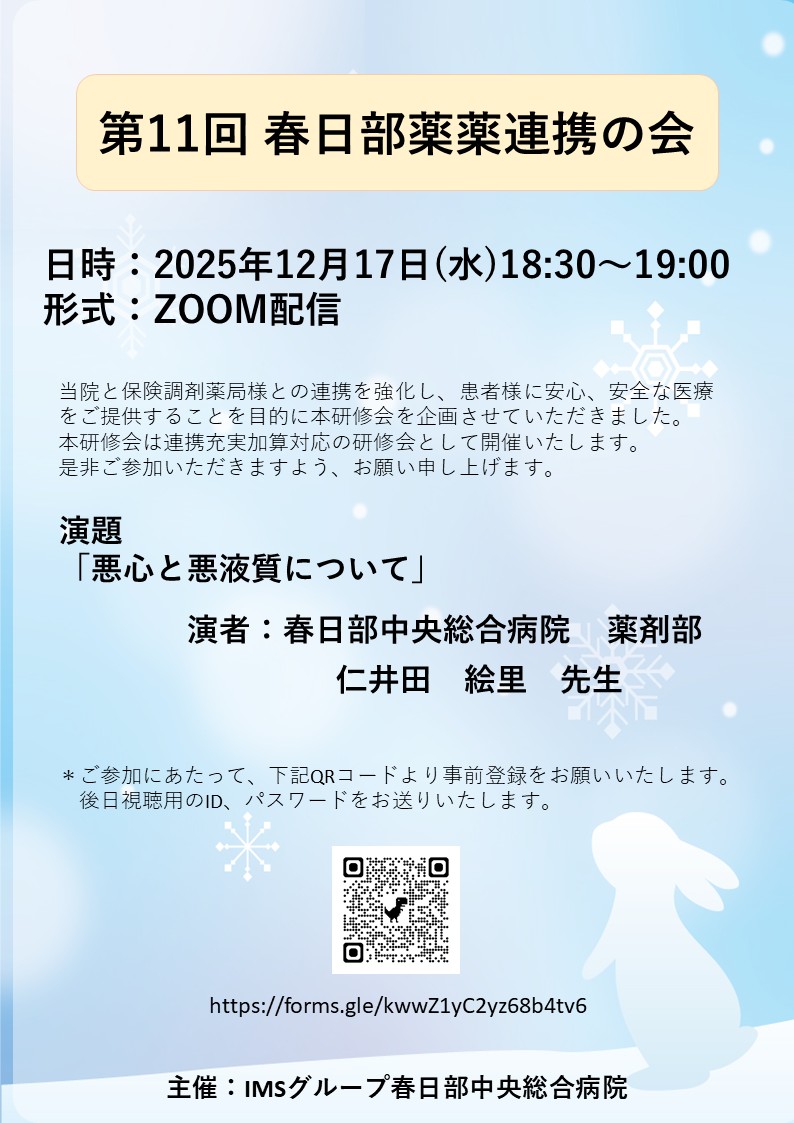 調剤上の形式的な変更に伴う疑義照会の削減および患者様への薬学的介入の充実、処方医の負担軽減による円滑な外来診療を目的に、春日部市薬剤師会合意のもと、形式的な疑義照会を簡素化するための「院外処方における疑義照会プルトコール」を運用しております。