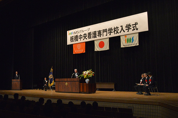 板橋中央看護専門学校とイムス横浜国際看護専門学校の合同入学式が 4月5日(火)品川区総合区民会館(きゅりあん)にて行われました。 今年は第1学科41名、第2学科81名の学生が入学しました。 中村哲也学校長をはじめ来賓の皆様から激励のお言葉を賜り、 両校の新入生は緊張した面持ちで決意を新たにしたようでした。 その後、記念写真撮影、IMSグループ病院との顔合わせ会が行われました。