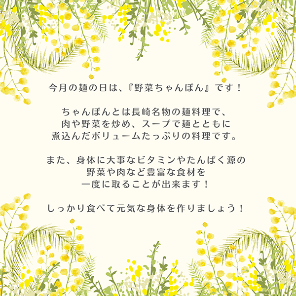 本日の昼食メニューは「麺の日」にちなんだメニューです!