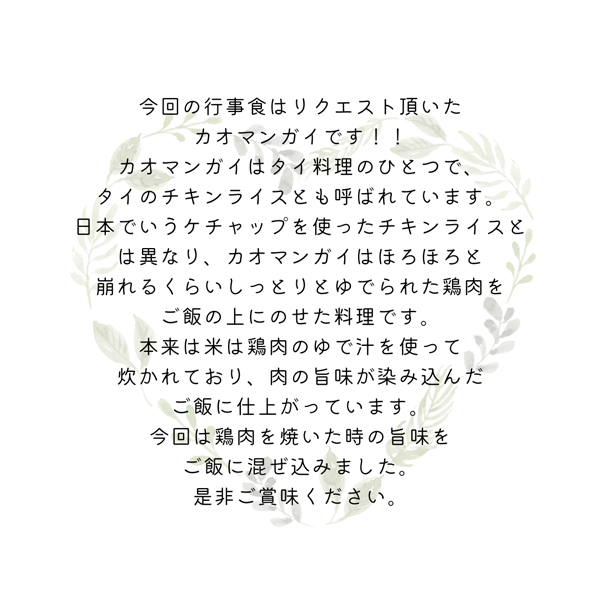 毎回栄養科スタッフが考えている行事食コメントに添えたキャッチフレーズは