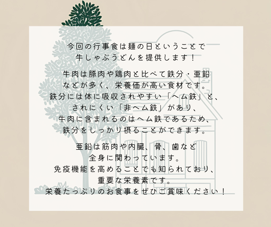 お健やかにリハビリに取り組んでいただけるような食となるよう、気候や日付などを考えながら企画しています♪