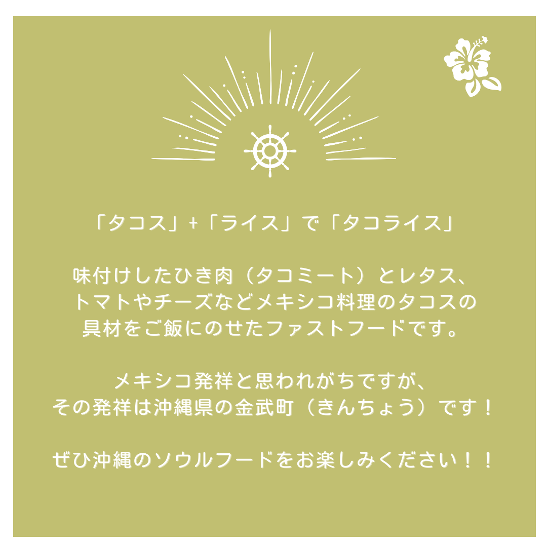 「タコス」+「ライス」で「タコライス」。語感の良さがポイントです!!