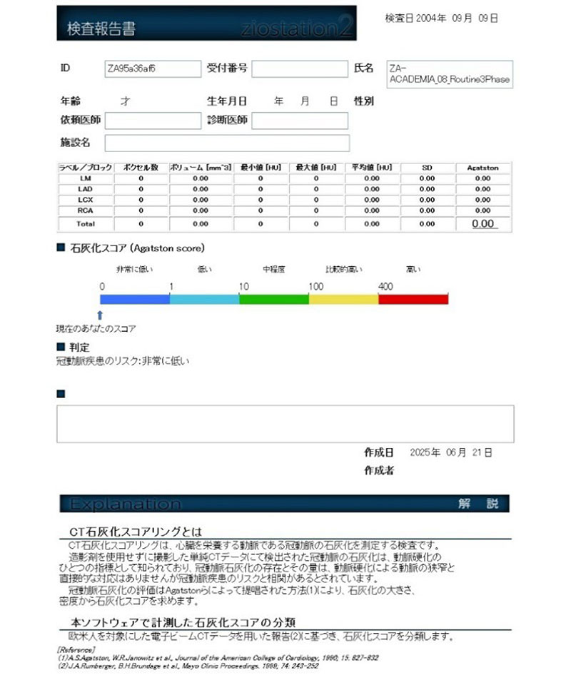 心臓を栄養する血管である冠動脈の石灰化を測定するCT検査です。