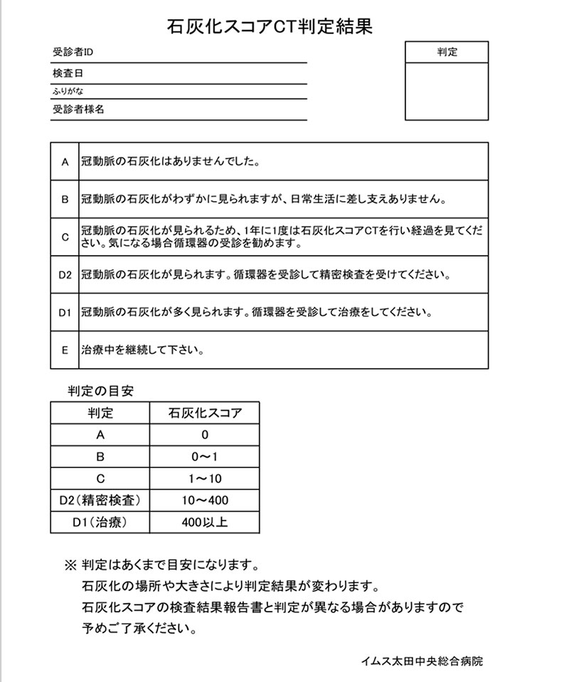 ※健康診断での石灰化スコアCTは心臓の疾患のリスクを調べるための検査です。心臓に疾患のある方は外来受診又は掛かりつけの医師にご相談下さい