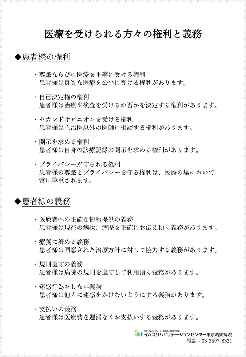 医療を受けられる方々の権利と義務