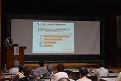 糖尿病内科 鈴木誠司医師が講師の下、「糖尿病」をテーマに医療公開講座を開催し、46名が参加した。今回は、どのような「生活習慣」「食生活」が影響し、どのような「病気」「症状」が起こるのかを、統計データを用いて分かりやすく講義した。特に「生活習慣」「食生活」の内容には参加された方々が興味を引かれた様で、頷きや感嘆の声が聞こえた。来場者からは「内容に満足しました」「もっと詳しくお話を聞きたい」等のお声をいただき、非常に充実した公開講座となった。今後も地域密着型の医療機関として地域貢献・知名度向上を目指し職員一丸となって定期的に開催したい。
