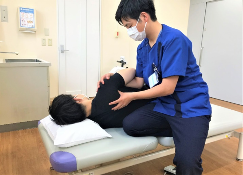 リハビリでは主に体幹の柔軟性の向上や筋力強化、姿勢の改善を行います。