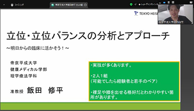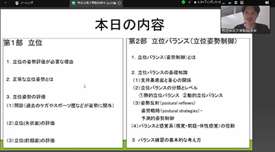 ZOOMで行う研修会でしたが、評価方法や治療技術などについて座学と実技を交えて講義を行っていただきました。