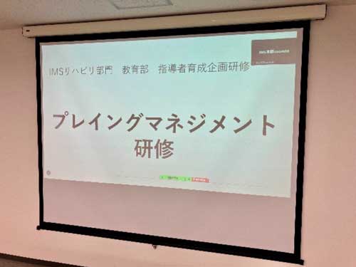 6月4日にIMSグループ各施設の技士長や管理者を対象に、本部人事部の米田氏に依頼し、チームビルディング研修の一環として「組織におけるリーダーシップ」の研修を行いました。171名が参加し、組織を運営・マネジメントする上で必要なリーダーシップを学びました。とても充実した内容で今後の運営に活かせる内容になっていました。