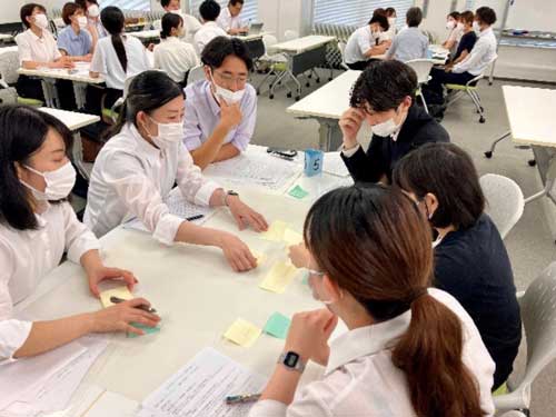 臨床業務と教育等管理業務を担っているスタッフ向けにプレイングマネジメント研修を実施しました。当研修は昇給評価表3~4等級のプレイヤーであり、管理を開始し始めたスタッフを対象として、多忙な中少しでも臨床と管理を効率的に遂行できるようになることを目的としました。そのために必要な論理的な思考を身につけるためにグループワークとして、各施設OJTにおける自身の課題を見つけて、その中の1つのテーマに対してロジックツリーを作成し、解決策まで導くワークを行いました。論理的なつながりを作ることに難渋することもありましたが、参加者全員が活発な意見交換をしており、大変有意義な研修になったと思われます。今年度末には継続研修として、今回策定した解決策を自施設で活かし、どのような結果・影響が出たかの共有、更なるブラッシュアップ研修も予定しております。