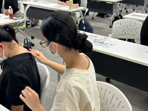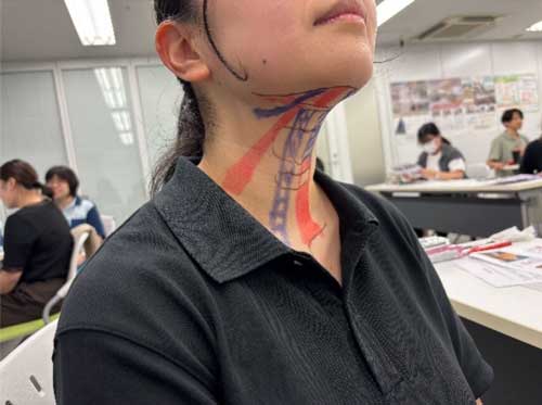 2025年7月6日(日)に、「STに必要な頭頚部の解剖・触診技術」をテーマとした集合研修を実施しました。当日は、職員21名に加え、4名の学生の皆さんにもご参加いただき、合計25名での開催となりました。研修は3時間にわたって演習を中心に行い、実際に触診等をしながら楽しく学べる充実した時間となりました。解剖や触診に対して苦手意識を持つST(言語聴覚士)も少なくない中、今回の研修がその第一歩として、今後の学びや臨床への自信につながれば幸いです。イムスST部門では、今後も職員の知識・技術向上を目的とした研修を企画・実施してまいります。