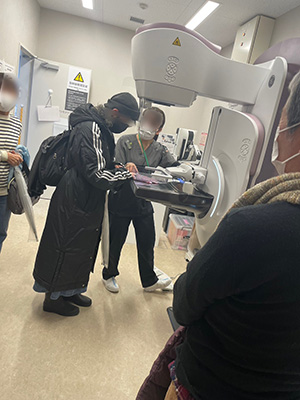 続いて行った放射線科ツアーでは、レントゲン室、CT室、MRI室、アンギオ室、骨密度検査室、マンモグラフィ室を見学し、技師長・放射線技師より、実際の機械を見ながらの説明を受けました。最新のCT装置では「被曝が少なく、画像も鮮明になっていて良かった」と好評で、実際に毎年骨密度検査を受けられている方からは「新しい機械になって安心した」との感想も寄せられました。アンギオ室では「病気になってから案内されるより、事前に知っていると安心できる」との声も多く、また「この検査を受けなくて済むよう、健康には気を付けたい!」など、普段なかなか触れることのない医療機器に強い関心が集まり、健康への意識も高まった機会となりました。