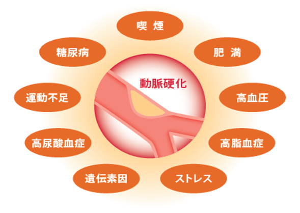 高血圧などの生活習慣病、運動不足などで動脈硬化が