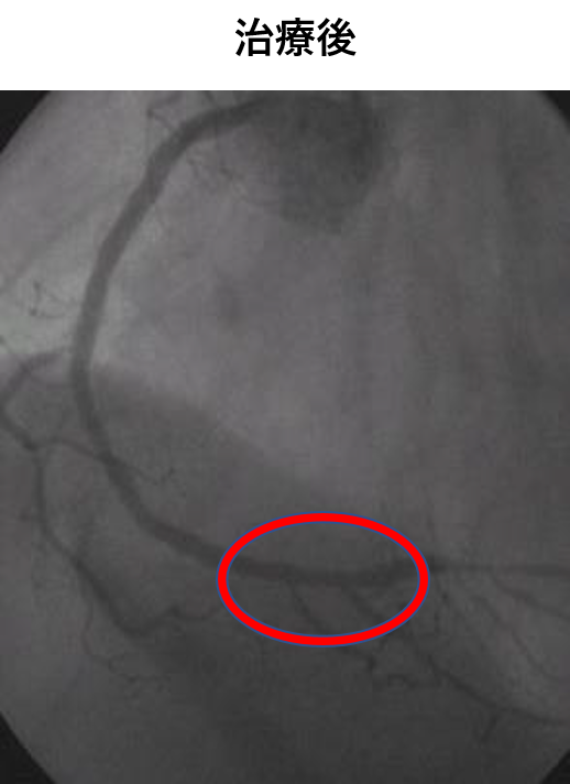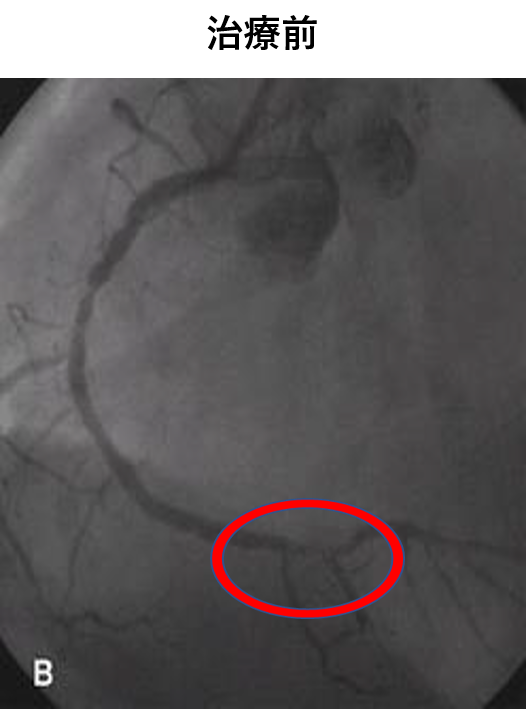 お薬で症状や心電図の改善がない、または乏しい場合に心臓カテーテル検査を行い、高度な狭窄があれば、治療を行うことが一般的です。