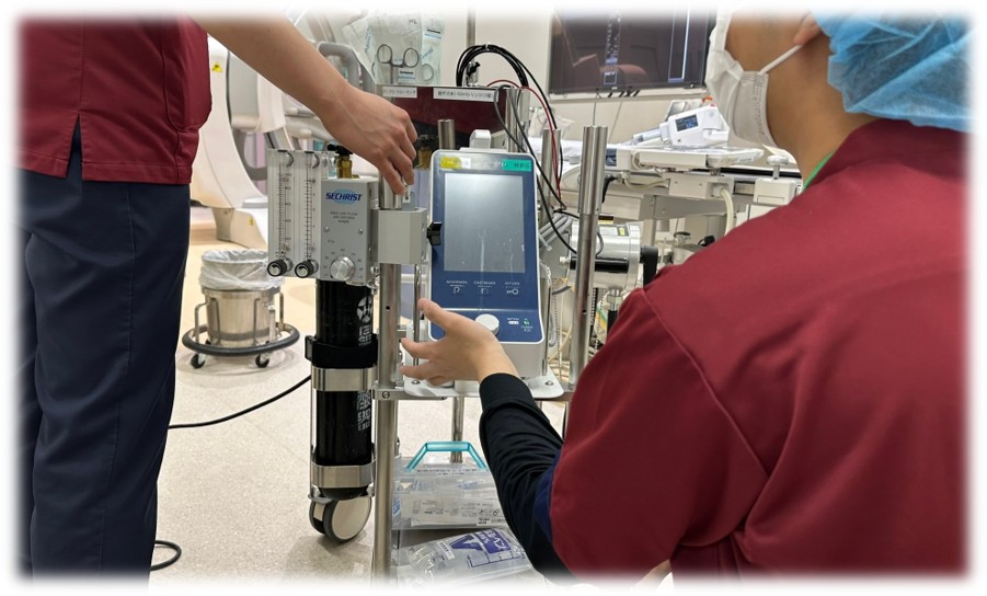 当院では、急性心筋梗塞による心肺停止症例や、心室細動・肺塞栓症による心肺停止症例によっては経皮的人工心肺(ECMO)導入を行なっています。
