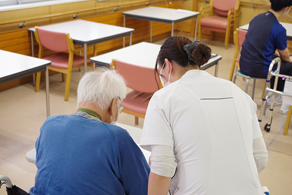 3病棟では、認知症の患者様が多く入院されていることから、「レクリエーションを通して、楽しみながら活動量を増やすこと」を病棟のチーム目標としています。レクリエーション活動は、脳への適度な刺激となり、思考力や意欲の維持・向上につながるだけでなく、他者との関わりを通して精神的な安定や孤独感の軽減が期待できます。季節感を取り入れた活動や、患者様のこれまでの生活歴を大切にした内容を工夫し、無理のない参加を促しています。回復期リハビリテーション病棟だからこそ可能な多職種連携を強みとし、看護師・介護福祉士・セラピスト・管理栄養士が一つのチームとなって連携を図り、患者様一人ひとりの状況に合わせた関わりを大切にしています。患者様の笑顔や前向きな気持ちを引き出せるよう、日々工夫を重ねながら支援に取り組んでいます。