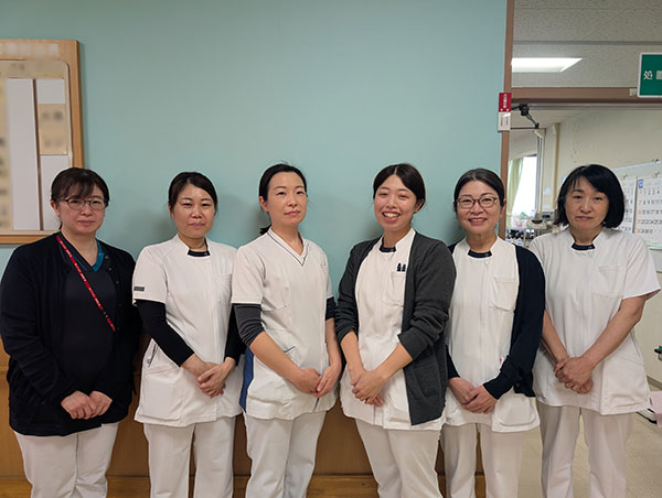 外来では、内科・泌尿器科・整形外科・リハビリテーション科の診療を行っています。外来看護師は、診療や処置の介助に加え、電話による受診相談にも対応し、患者様が安心して受診できるよう支援しています。私たちが日々の患者様との関わりの中で大切にしているのは、病棟から外来へとつながる継続看護と、丁寧なコミュニケーションです。当院を退院し外来通院へ移行される患者様に対しては、退院前に外来看護師が病室を訪問し、退院後の生活への不安や内服に関する困りごとを確認しています。また、退院後の初回外来受診時には、訪問を行った看護師が患者様との会話を通して受診のサポートを行い、安心して通院を継続できるよう支援しています。患者様が住み慣れた地域で自分らしい生活を続けながら、安心して外来受診ができるよう、同じ目線に立ち、気持ちに寄り添った看護の提供を心がけています。