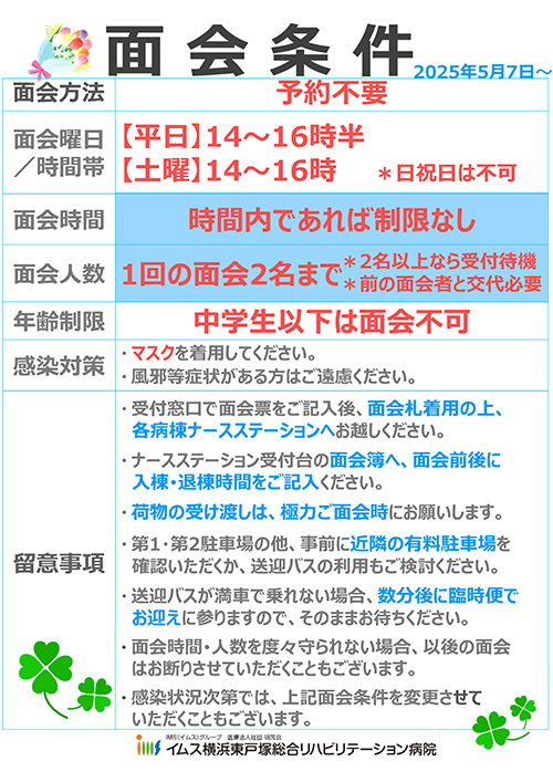 面会の際は、正面受付で必ず体温を測り、面会票に記入してください。