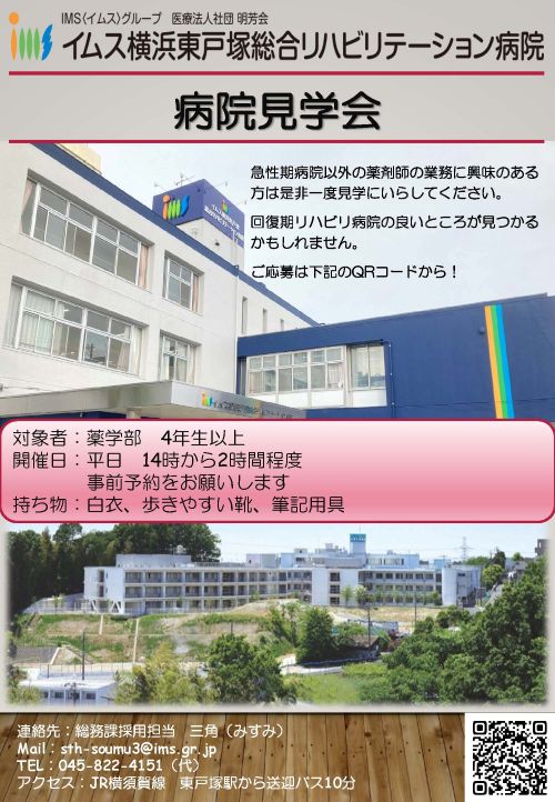 | 応募・選考について | 詳しくは下記イムス本部採用ページよりご確認ください。 IMSグループのホームページ |