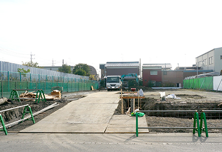 建築現場では、既存の外堀を解体し、アプローチを付け替え、基礎工事が始まりつつあります。