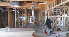建築現場では、上棟が建ち、内装工事が始まっております。