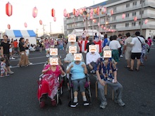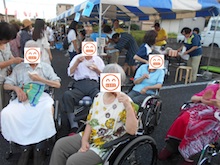 納涼会 - 8月は隣接しているリハビリテーション病院の納涼会に参加させて頂きました。ケアピリカみさとではかき氷のお手伝いをさせていただきました。暑いのもあり、たくさん売れました。利用者様からは懐かしいとの声が聞こえてきて、納涼会を大いに楽しんで頂けたと思います。