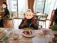 ムードメーカーのスタッフのNさんはこの日のために衣装もレパートリーを考えてきてくれて、楽しみながらランチをしていました。