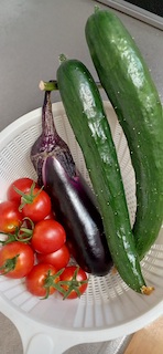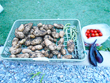 ピリカの畑、その後 - 梅雨が明けず、長雨が続いています。本日久しぶりに雨も降らず野菜の収穫が出来ました。ミニトマトは、見事に鈴なりに実をつけ、今日だけで150個収穫出来ました。ジャガイモ、ナス、インゲンも大きく成長しました。