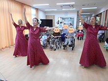 去年も披露していただいたこともあり、覚えている利用者さんもたくさんいました。「また見れて嬉しいわ」と楽しんでいただいてる方が多くいらっしゃいました。また、初めての方はフラダンスの由来の説明から熱心に聞き入っていました。