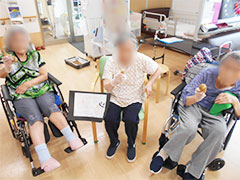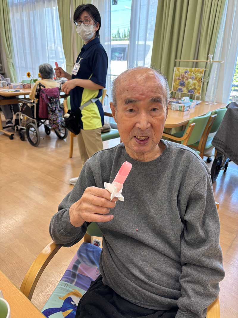 ご利用者様達に少しでも涼をとっていただくべくおやつにはアイスを召し上がって頂きました!