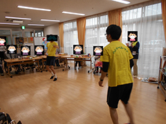 スタッフのお子さんにボランティアでお手伝いに来てもらい、ゲームへの誘導や、綿あめ作りをスタッフと一緒に行いました。