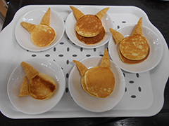 バナナやあんこ、フルーツなど盛りだくさんの豪華パンケーキを食べて頂きました!