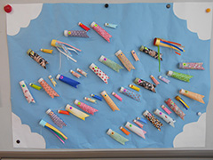 鯉のぼりケーキを作ろう! - 5月ということもあり、鯉のぼりケーキを皆さんと一緒に作成しました。鱗には、イチゴ・キュウイを使ってイチゴ・キュウイが剥がれないように 下地にスポンジケーキと生クリームを塗りました。薄く塗る作業も皆さんでやっていただきました。大胆に盛り付けする人、繊細に盛り付けする人、いろんな方がいました。笑 それを見て、皆さん笑顔で会話が弾む様子がみられました。